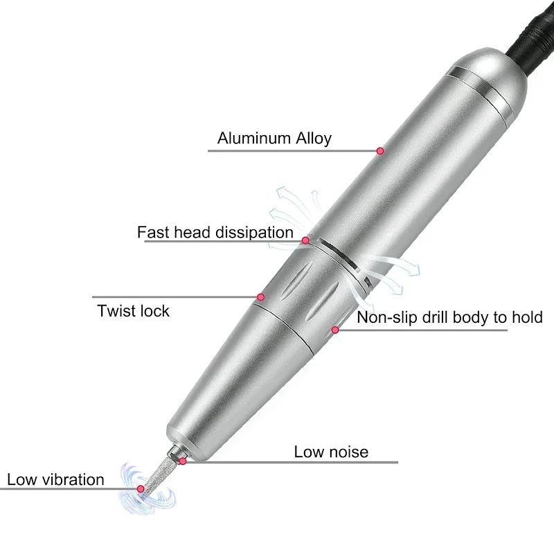 Επαγγελματικός, επαναφορτιζόμενος τροχός μανικιούρ με ρυθμιζόμενη ταχύτητα, λειτουργία μειωμένου θορύβου και δονήσεων και εργονομικό σχεδιασμό για εύκολη και άνετη χρήση.