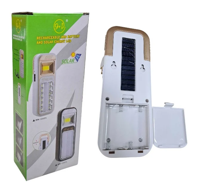 Επαναφορτιζόμενο φως LED έκτακτης ανάγκης με ηλιακό πάνελ στο πίσω μέρος για έξτρα αυτονομία.