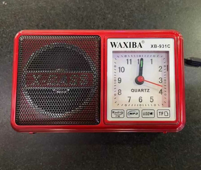Επαναφορτιζόμενο ραδιόφωνάκι XB-931C από την Waxiba, με μεγάλο αναλογικό ρολόι, σε πρακτικό μέγεθος για μεταφορά παντού.