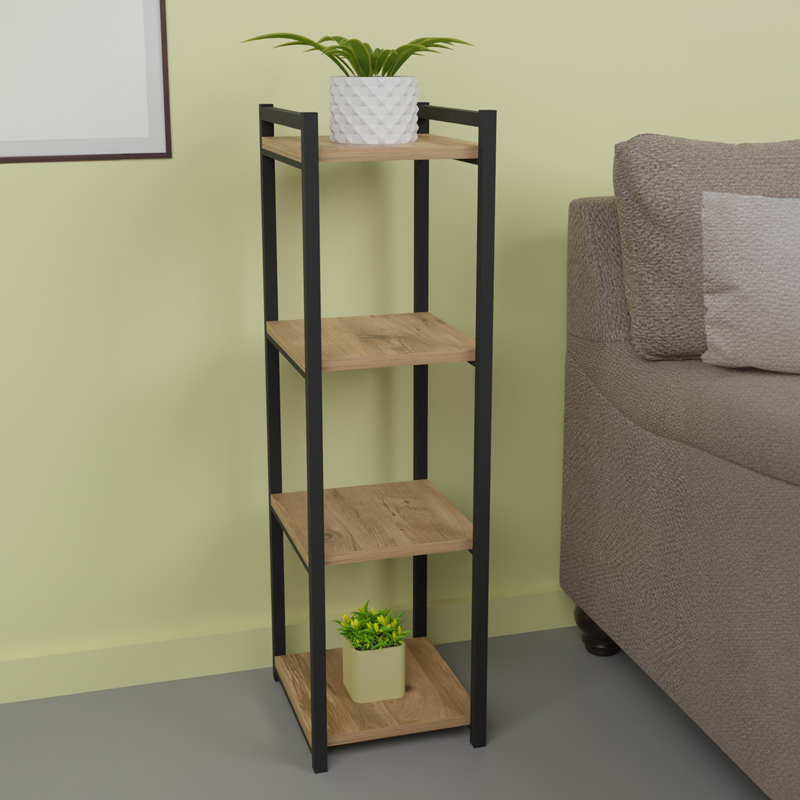Επιδαπέδια ραφιέρα Harvey pakoworld μαύρο μέταλλο και μελαμίνη σε φυσική απόχρωση 33x28x100εκ