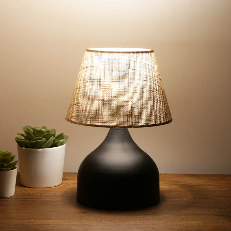 Επιτραπέζιο φωτιστικό PWL-1068 pakoworld Ε27 γιούτα μαύρο-μπεζ Φ22×32εκ