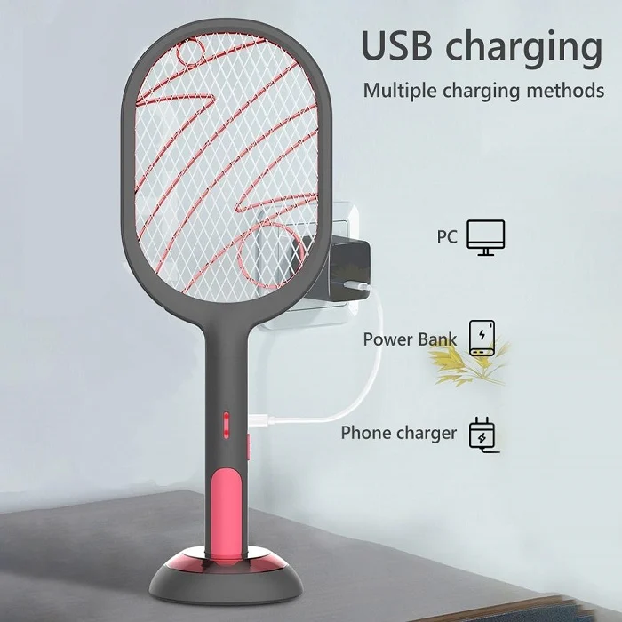 Επαναφορτιζόμενη μεγάλη ηλεκτρική ρακέτα με βάση στήριξης για εύκολη αποθήκευση, με διπλό ηλεκτροφόρο δίχτυ και επαναφορτιζόμενη μπαταρία 1200mAh. Σας απαλλάσσει εύκολα από όλα τα ενοχλητικά έντομα (κουνούπια μύγες μέλισσες κλπ) ενεργοποιώντας την με το πάτημα ενός κουμπιού και απλώς αγγίζοντάς τα. -Ισχύς:5W. -Πλήρης φόρτιση σε 5 ώρες. -Αυτονομία μπαταρίας έως και 10 μέρες. -Προστατευτικό εξωτερικό πλέγμα. -Λυχνία ένδειξης φόρτισης. -Διαστάσεις: συνολικό μήκος 49.6cm, διάμετρος ρακέτας 18.5cm -Διαστάσεις Βάσης: 3.8×13.5cm. -Υλικό: ABS. -Συχνότητα: 50Hz.