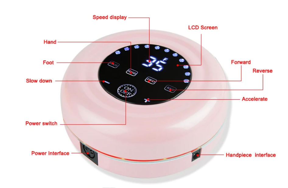 Επαγγελματικός τροχός μανικιούρ-πεντικιούρ υψηλής απόδοσης, με ρυθμιζόμενη ταχύτητα και φορά, λειτουργία μειωμένου θορύβου και δονήσεων και εργονομικό σχεδιασμό για εύκολη και άνετη χρήση.