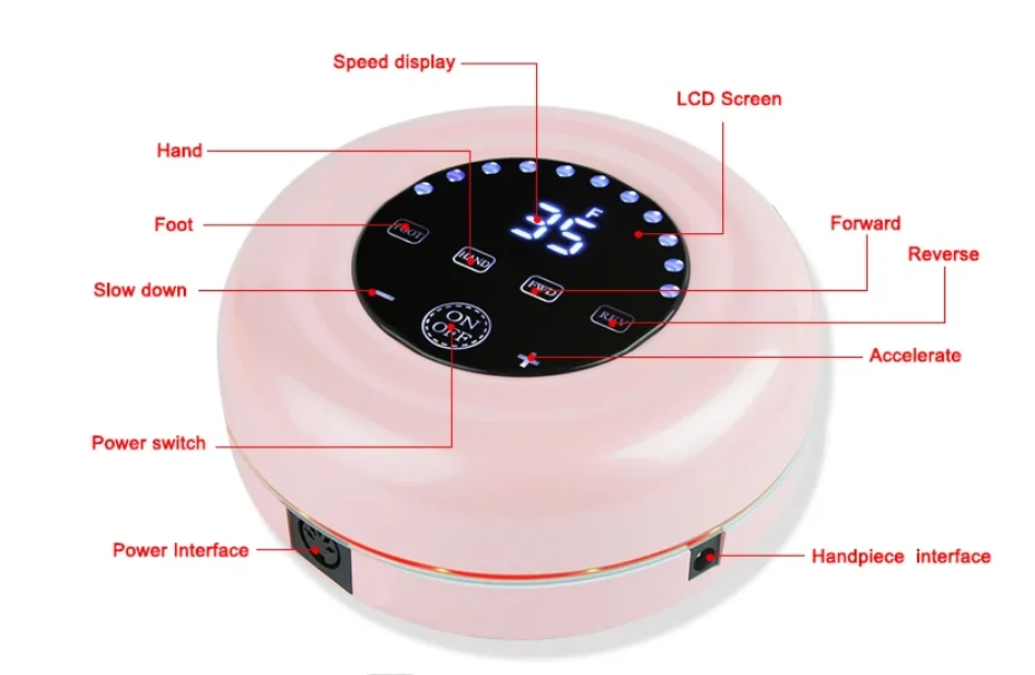 Επαγγελματικός τροχός μανικιούρ-πεντικιούρ υψηλής απόδοσης, με ρυθμιζόμενη ταχύτητα και φορά, λειτουργία μειωμένου θορύβου και δονήσεων και εργονομικό σχεδιασμό για εύκολη και άνετη χρήση.