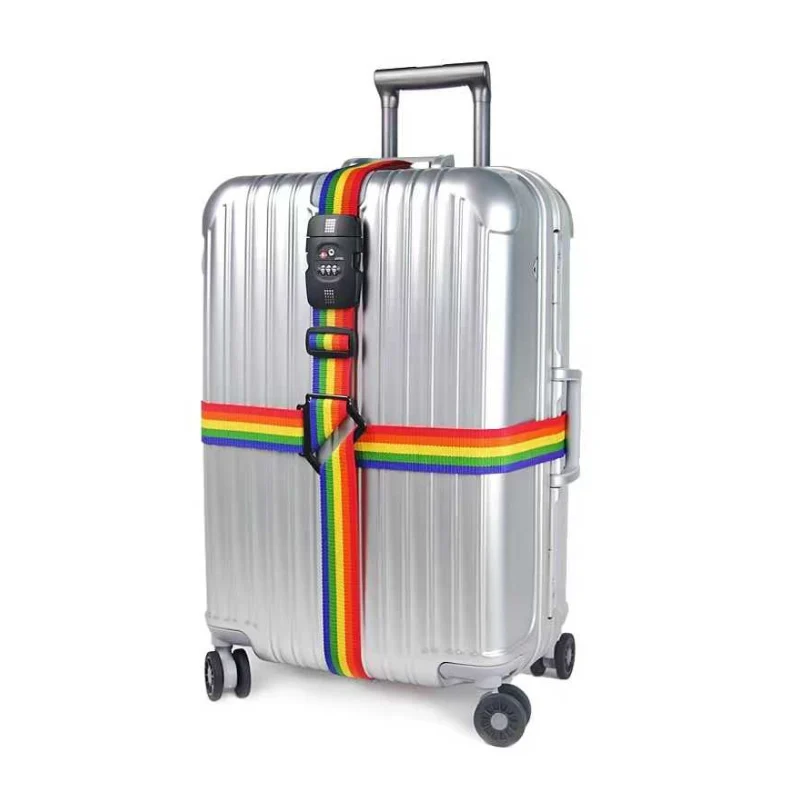 Ζώνη-ιμάντας ασφαλείας αποσκευών, σταυρωτός, με κωδικό ασφαλείας 3 ψηφίων και ρυθμιζόμενο μήκος.