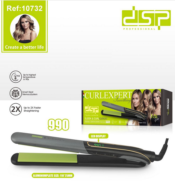 Iσιωτική μαλλιών DSP με κεραμικές πλάκες και τεχνολογία τουρμαλίνης, που προστατεύει τα μαλλιά σας από την φθορά της θερμότητας και το φριζάρισμα, προσφέροντας λείο και λαμπερό αποτέλεσμα.