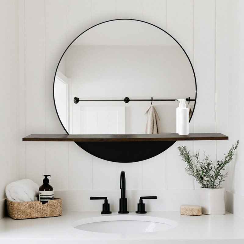 Ο στρογγυλός καθρέφτης Salmin, αποτελεί ένα κομψό και λειτουργικό στοιχείο για κάθε σύγχρονο χώρο. Κατασκευασμένος από υψηλής ποιότητας γυαλί με ανθεκτικό μαύρο μέταλλο και ενσωματωμένο ράφι, παρέχει πρόσθετο αποθηκευτικό χώρο για καλλυντικά, αρώματα ή άλλα προσωπικά αντικείμενα και ταιριάζει αρμονικά σε κάθε χώρο καθώς προσθέτει μια νότα πολυτέλειας στο μπάνιο, την κρεβατοκάμαρα ή ακόμη και το διάδρομο. Ο μινιμαλιστικός του σχεδιασμός τον καθιστά εύκολο να συνδυαστεί με όλα τα στυλ διακόσμησης.