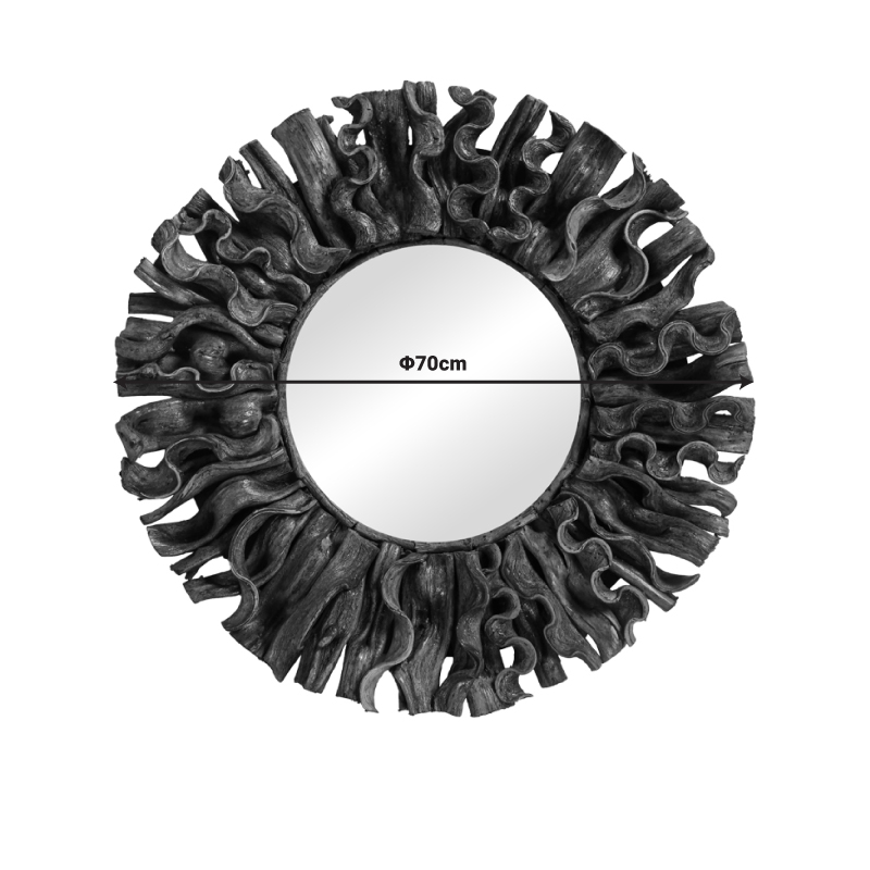 Ο καθρέπτης Adrez από ξύλο Lianas σε φυσική απόχρωση είναι ένα κομψό και μοντέρνο στοιχείο διακόσμησης που θα προσθέσει μια φυσική και ζεστή αίσθηση σε κάθε χώρο. Το στρογγυλό σχήμα του καθρέφτη και το μοναδικό σχέδιο του πλαισίου του, δημιουργούν ένα εντυπωσιακό οπτικό αποτέλεσμα που σίγουρα θα τραβήξει τα βλέμματα.