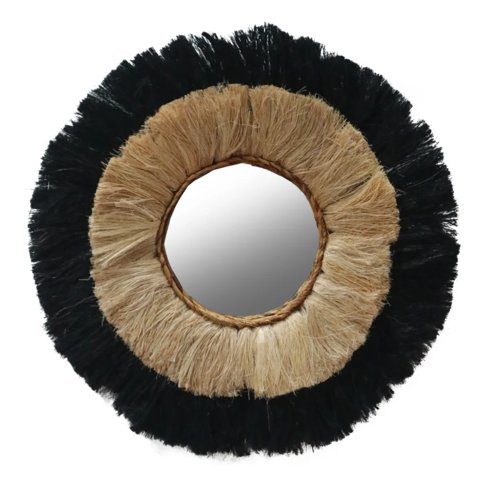 O στρογγυλός καθρέπτης ΗΜ7800 είναι πραγματικά ένα εντυπωσιακό κομμάτι στην διακόσμηση του χώρου σας! Το design του είναι όμορφο με διπλό στρογγυλό πλαίσιο από το χόρτο Mendong, το οποίο στο κέντρο του «φιλοξενεί» τον καθρέπτη, ενώ το κάτω πλαίσιο είναι σε φυσικό χρώμα και το επάνω είναι σε χρυσό χρώμα. Το χαρακτηριστικό είναι ότι ο καθρέφτης είναι μικρός και αποτελεί κυρίως διακοσμητικό στοιχείο.