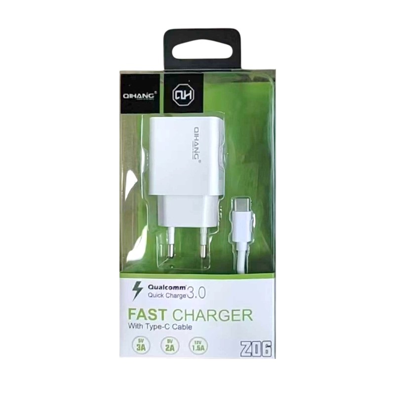 Αντάπτορας φόρτισης Fast Charger με καλώδιο Type-C που προσφέρει γρήγορη φόρτιση Quick Charge 3.0A.