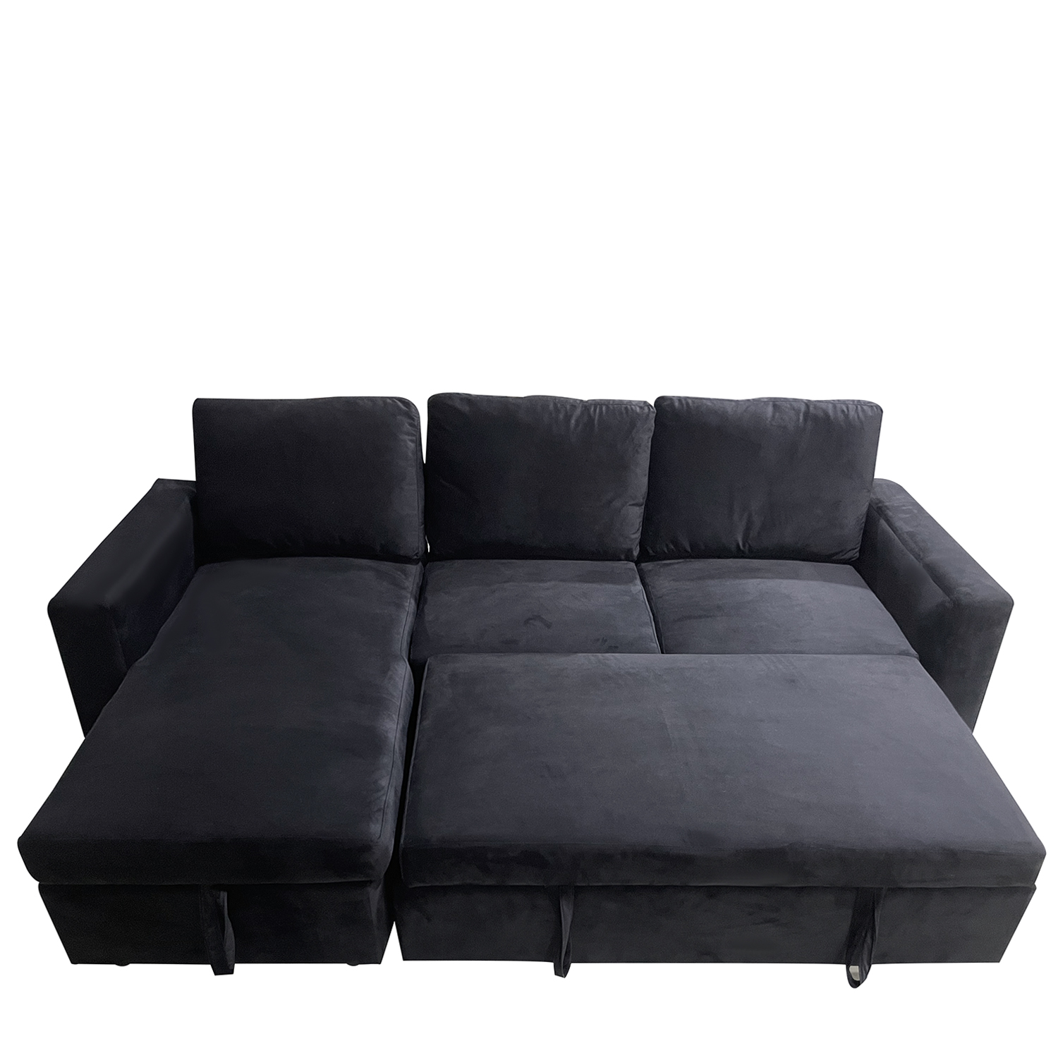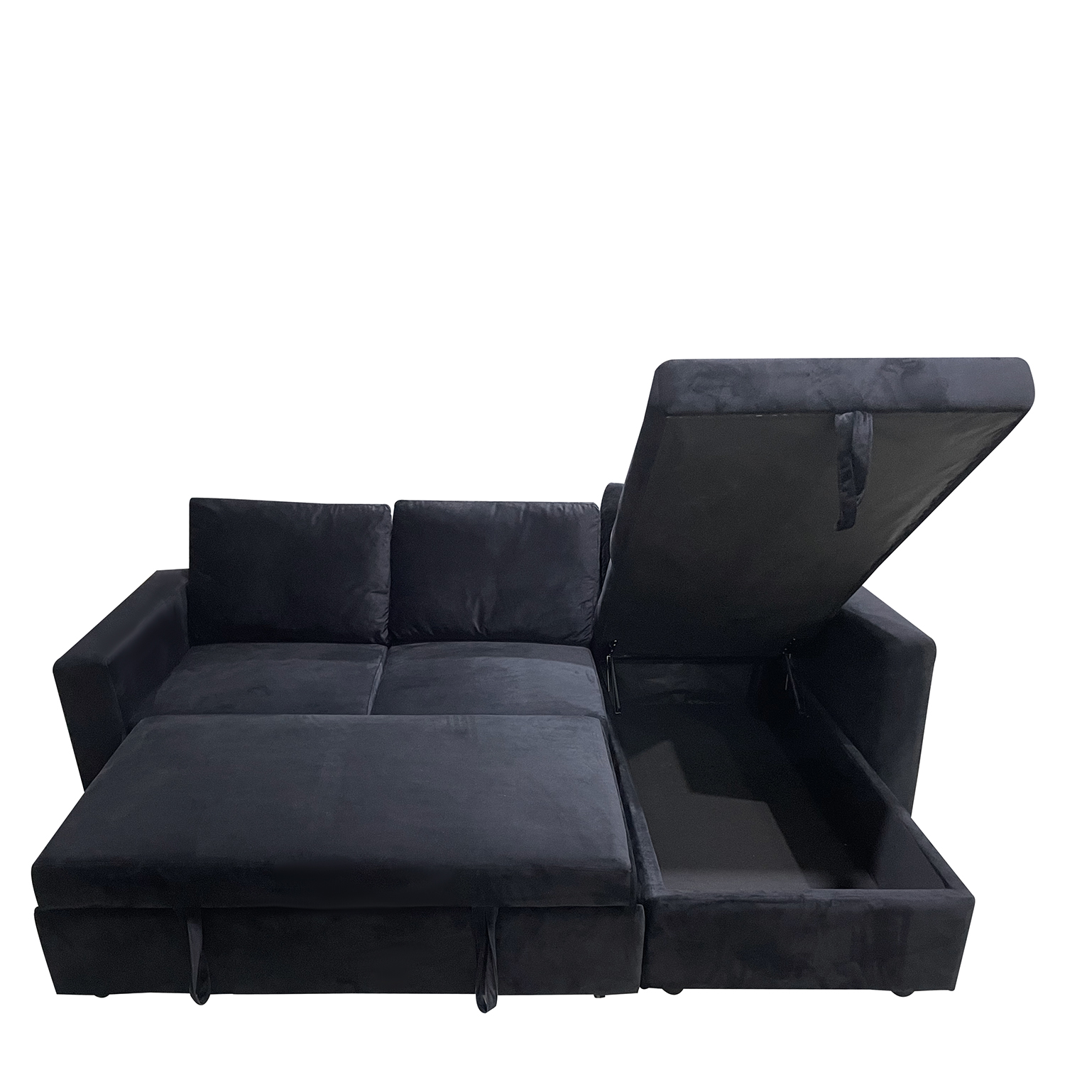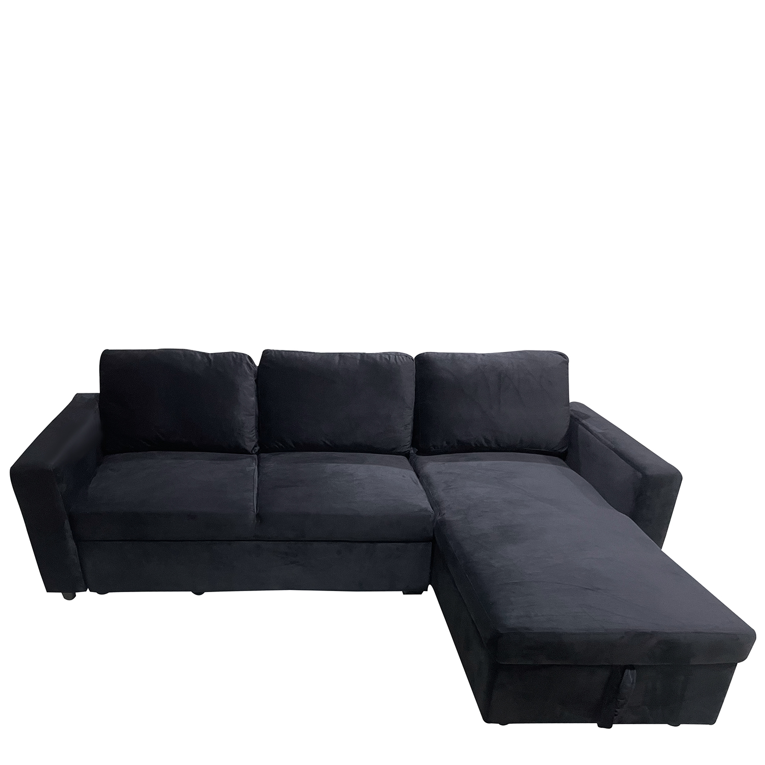 Καναπές Κρεβάτι Γωνιακός ArteLibre MATINEE Αναστρέψιμος Μαύρο Ύφασμα 220x155x81cm