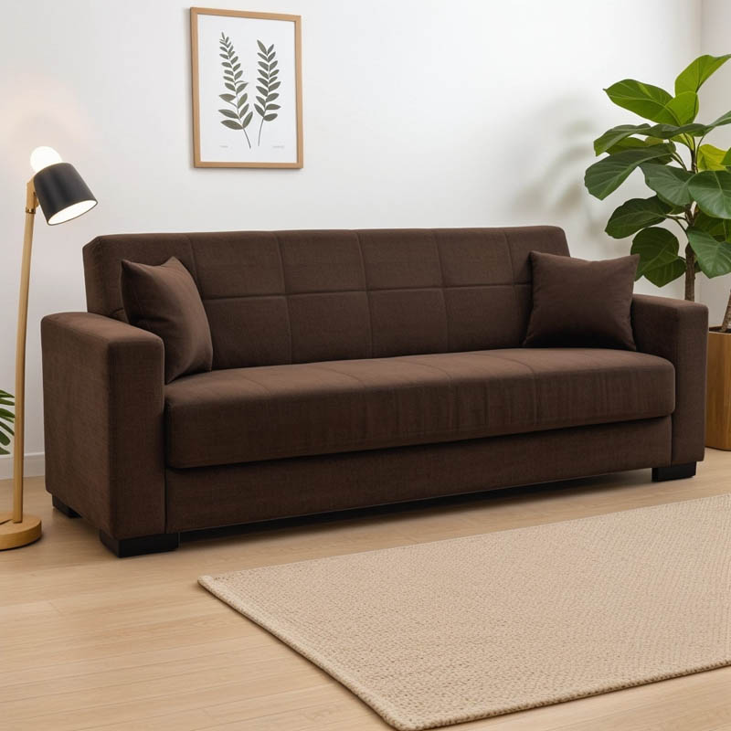 Καναπές-κρεβάτι με αποθηκευτικό χώρο τριθέσιος Vox pakoworld καφέ ύφασμα 214x82x83εκ