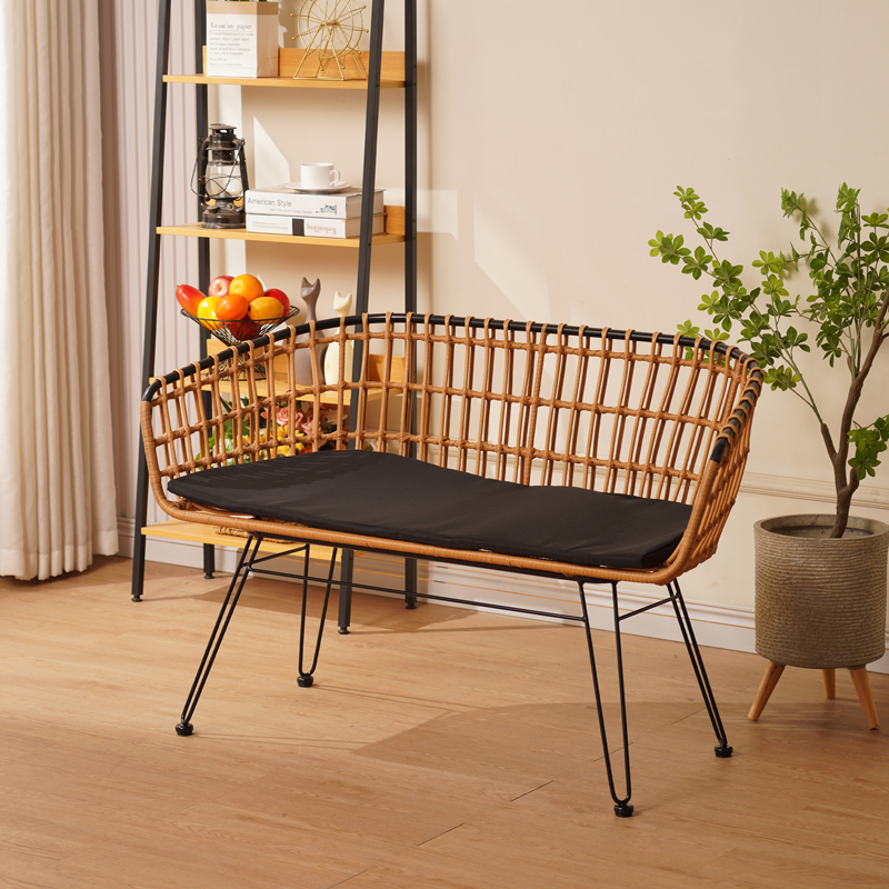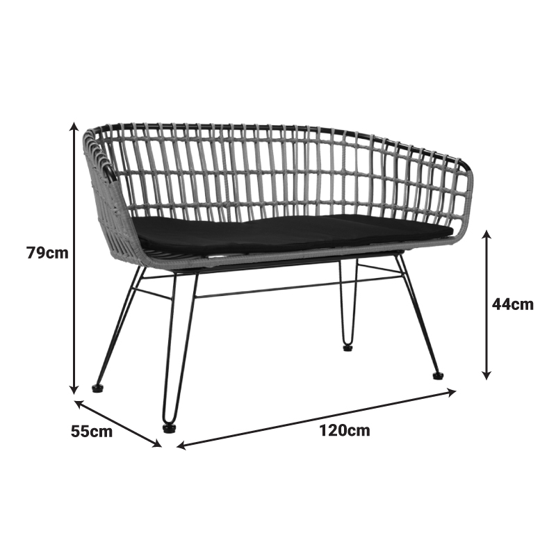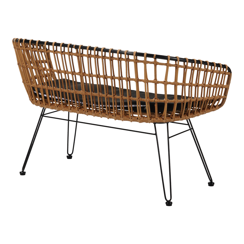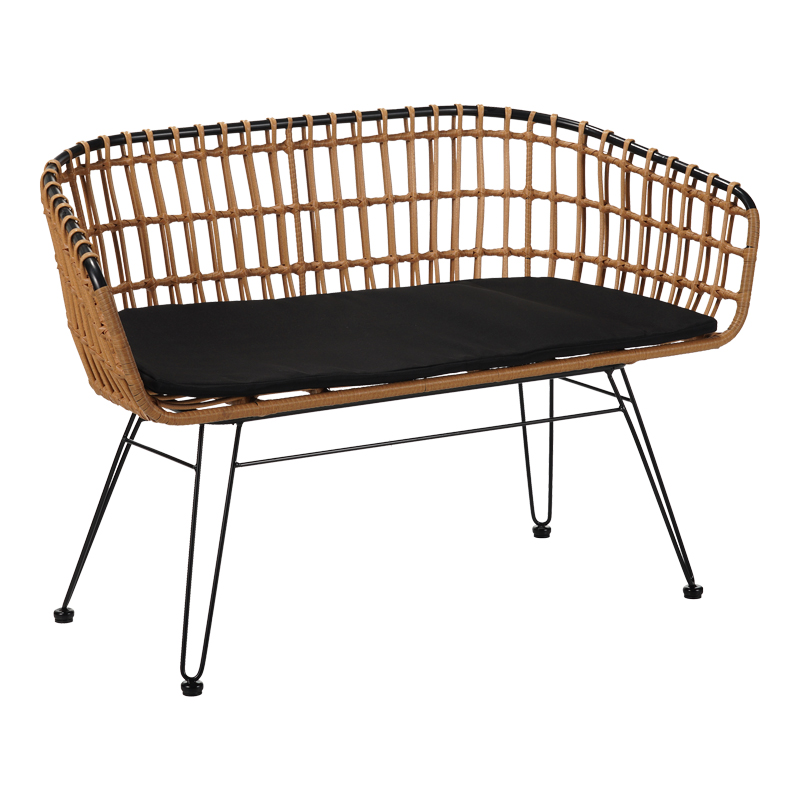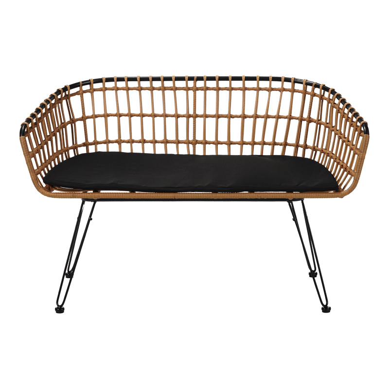 Καναπές 2θέσιος Naoki pakoworld μέταλλο μαύρο-pe φυσικό 120x55x79εκ