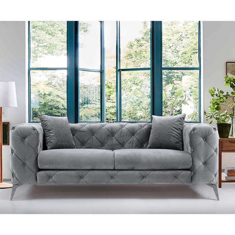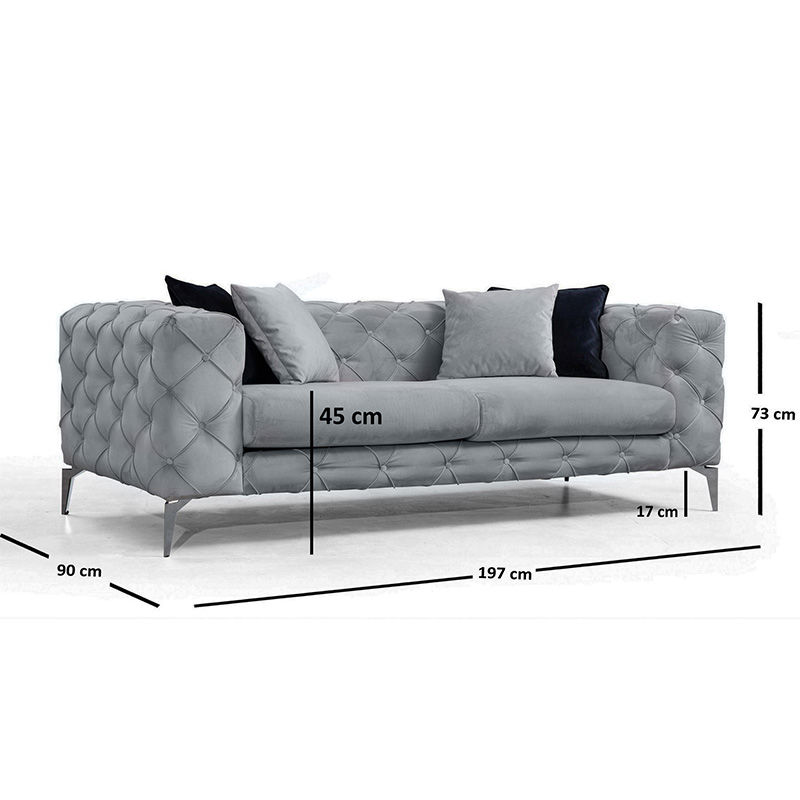Καναπές 2θέσιος PWF-0502 pakoworld βελούδο γκρι-χρώμιο 197x90x73εκ