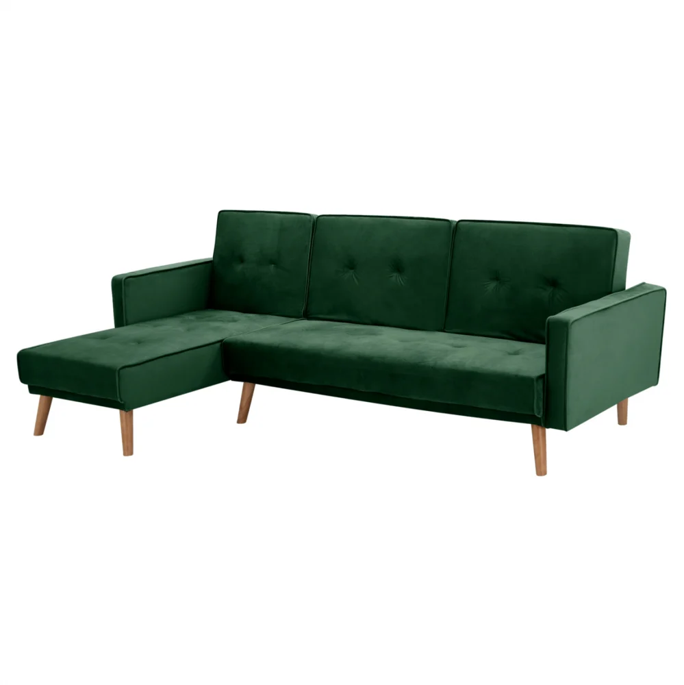 Καναπές γωνία κρεβάτι, επενδεδυμένος με βελούδινο ύφασμα σε κυπαρισσί απόχρωση 267x153x85 εκ