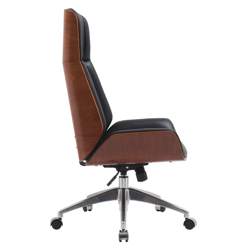 Καρέκλα Γραφείου Διευθυντή ArteLibre TITUS Μαύρο/Καφέ Ξύλο/PU/Αλουμίνιο 59x65x108.5-116.5cm