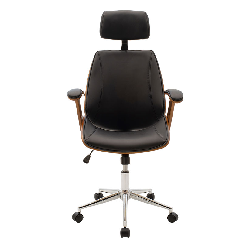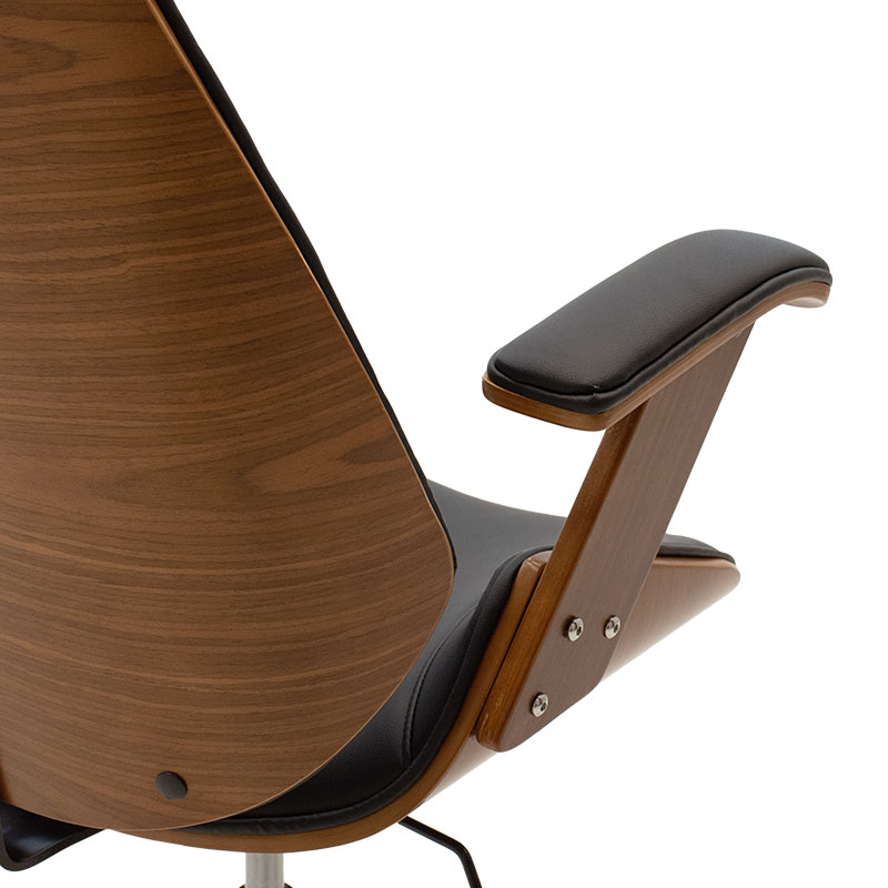 Καρέκλα γραφείου διευθυντή Fern pakoworld pu σε μαύρη απόχρωση και καρυδί ξύλο 64.5x62x117/123εκ