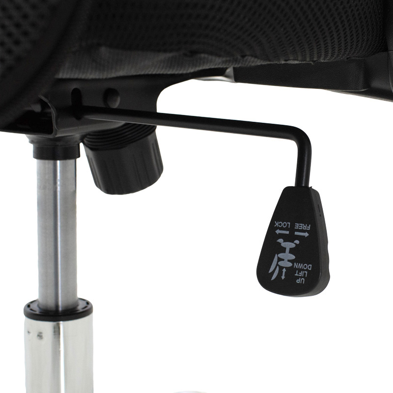 • Ύφασμα Mesh:  Επένδυση υφάσματος Mesh στην πλάτη και στην βάση και τεχνόδερμα στην κορυφή της πλάτης για μεγαλύτερες αντοχές.  Το ύφασμα  Mesh επιτρέπει την κυκλοφορία του αέρα και αποτρέπει την εφίδρωση του σώματος, προσφέρεται  σε μαύρο χρώμα.