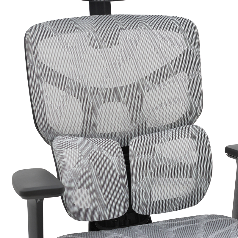 * Τ Ύφασμα Mesh: Επένδυση υφάσματος Mesh στην πλάτη και στην βάση για μεγαλύτερες αντοχές. Το ύφασμα Mesh επιτρέπει την κυκλοφορία του αέρα και αποτρέπει την εφίδρωση του σώματος. Προσφέρεται σε λευκό-μαύρο χρώμα.