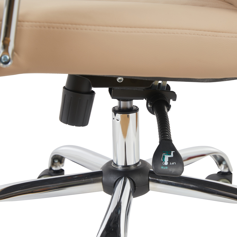 - Στήριξη σε πεντακτινωτή βάση χρωμίου 350mm με PU ροδάκια για αθόρυβη και ομαλή κύλιση