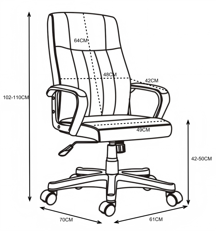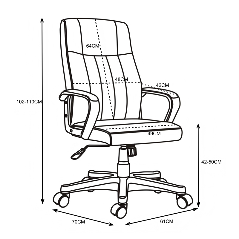 - Ανθεκτικός μεταλλικός σκελετός: Έδραση σε τροχήλατη πεντακτινωτή βάση πολυπροπυλενίου υψηλών αντοχών. Δυνατότητα εύκολης περιστροφής και μετακίνησης προς κάθε κατεύθυνση.