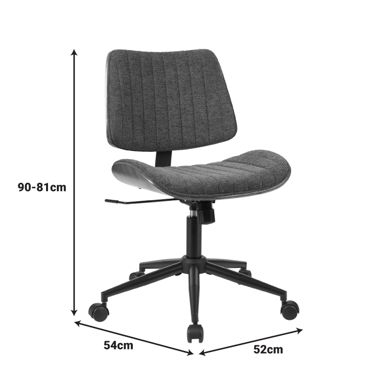 Καρέκλα γραφείου εργασίας Amani pakoworld ξύλο σε καρυδί με γκρι ύφασμα 52x54x90.5εκ