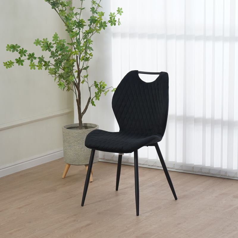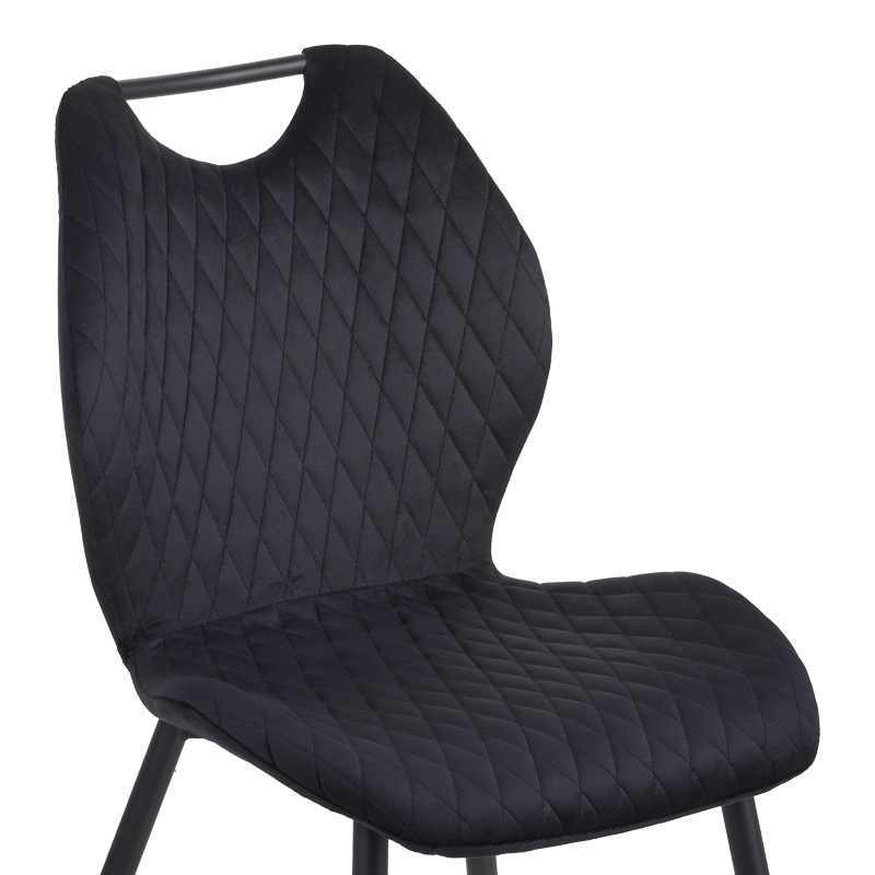 Καρέκλα Bongo pakoworld βελούδο σε μαύρη απόχρωση με μαύρα μεταλλικά πόδια 56.5x47x84εκ