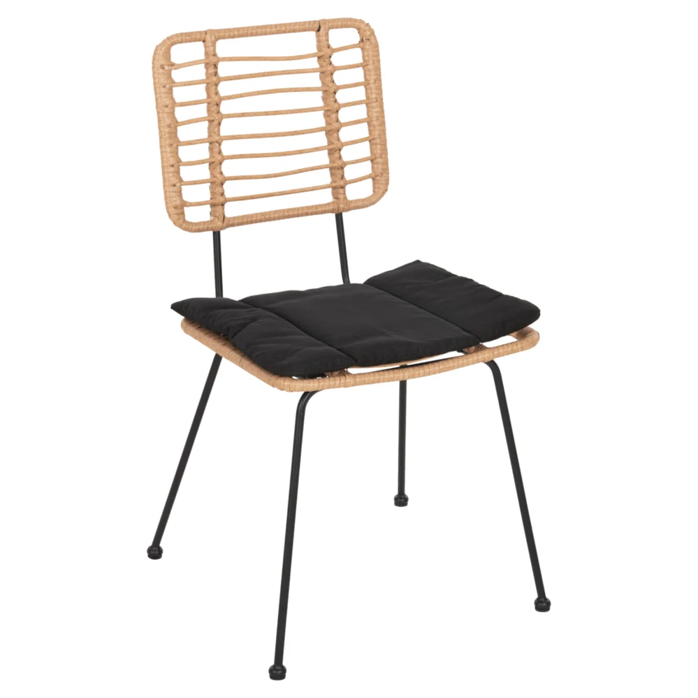 Το κάθισμα της καρέκλας είναι από συνθετικό Rattan σε πλέξη wicker. Στα περισσότερα έπιπλα κήπου και γενικά σε έπιπλα για εξωτερικούς χώρους χρησιμοποιείται συνθετικό Rattan από PVC, δηλαδή τεχνητές ίνες υψηλής ποιότητας. Αυτό δίνει στην κατασκευή εξαιρετική αντοχή και ανθεκτικότητα σε ακραίες συνθήκες ζέστης ή κρύου.
