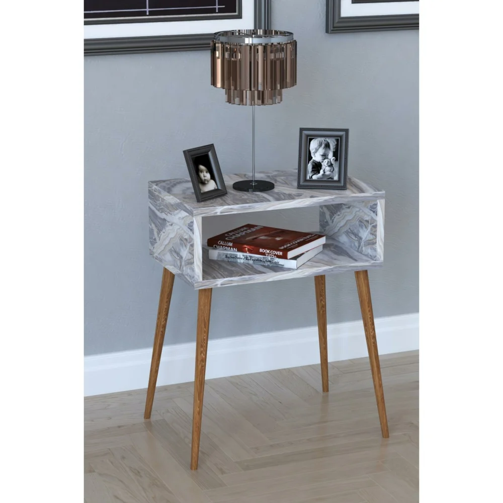 Κομοδίνο ArteLibre GANIRU Γκρι/Όψη Μαρμάρου Μοριοσανίδα/Ξύλο 45x30x60cm