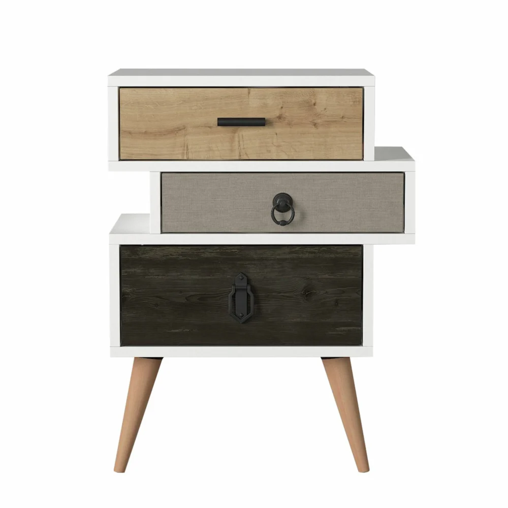 Κομοδίνο ArteLibre KIMOLOS Λευκό/Φυσικό/Καφέ 52x30x68cm