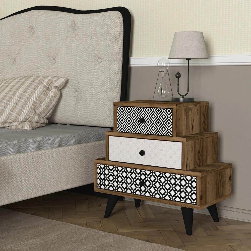 Κομοδίνο ArteLibre LIDYA Σκούρο Καφέ Με Σχέδιο 60x30x57cm