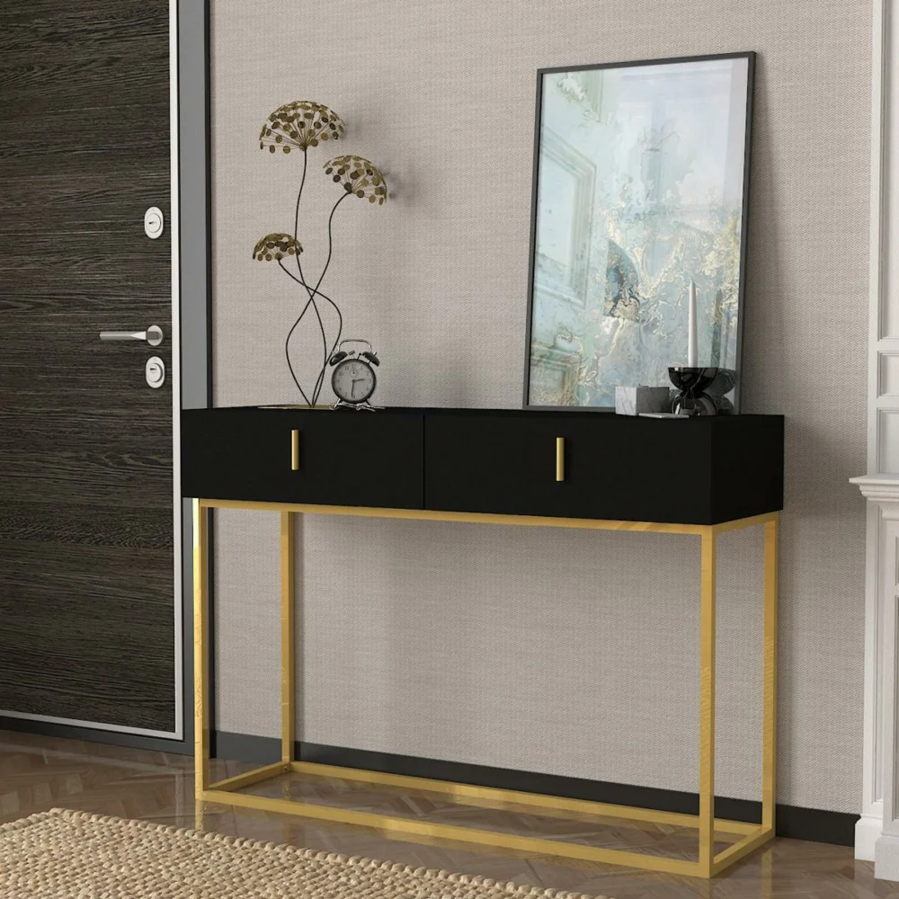 Κονσόλα ArteLibre MYKONOS Μαύρο/Μπρονζέ Μοριοσανίδα/Μελαμίνη/Μέταλλο 120x37x84cm