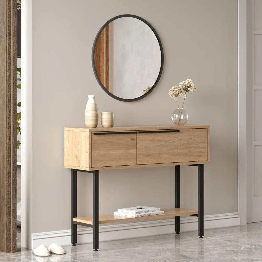 Κονσόλα ArteLibre NORFOLK Φυσικό/Μαύρο Μοριοσανίδα/Μέταλλο/Γυαλί 29.5x100x76cm