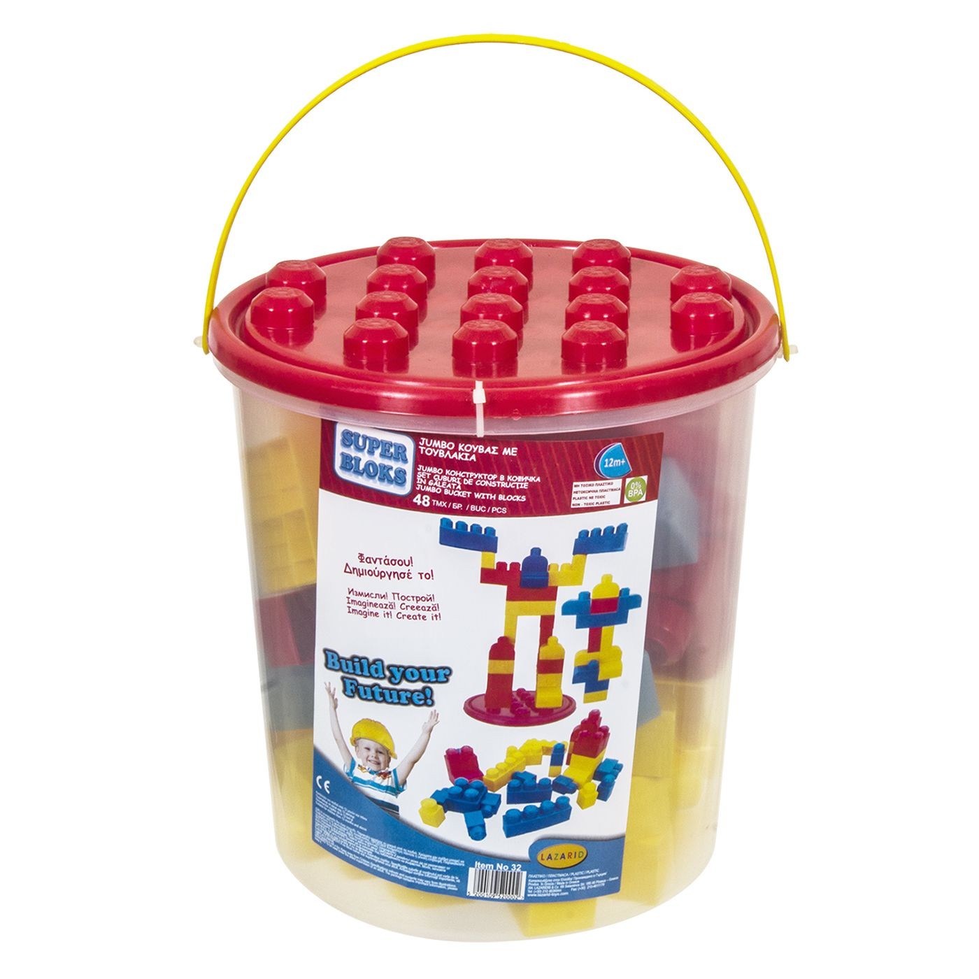 Κουβάς με 48 Μεγάλα Τουβλάκια για Αγόρι 12+ Μηνών ø25x26cm Lazaridis 0032