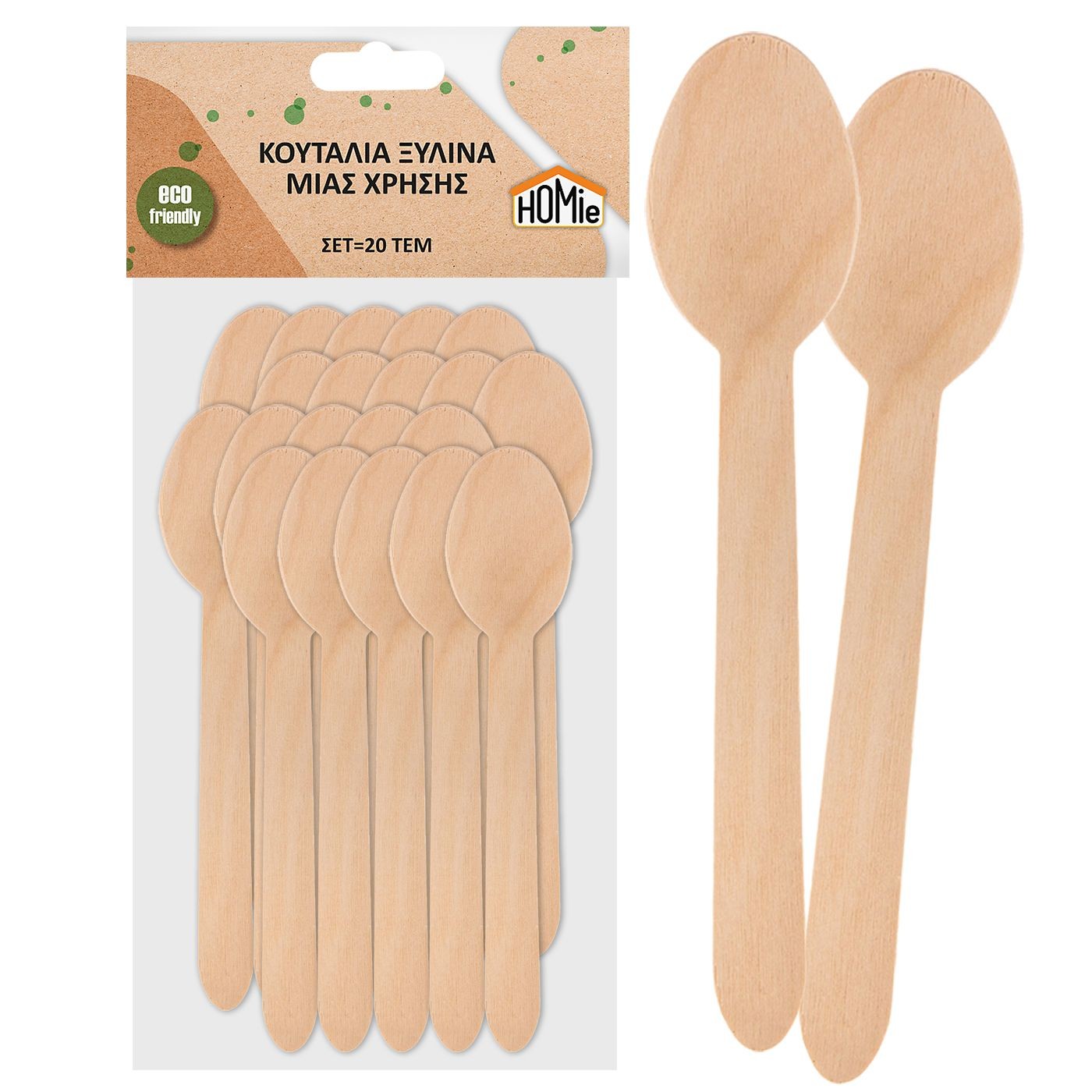 Κουτάλια Ξύλινα Μιας Χρήσης σετ=20 τεμ 16cm Homie 1002101