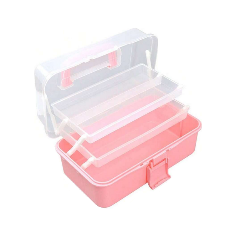 Πλαστικό κουτί οργάνωσης καλλυντικών και μπιζού, με πολλαπλές θήκες οργάνωσης, χειρολαβή και εργονομική σχεδίαση 3 επιπέδων για εξοικονόμηση χώρου.