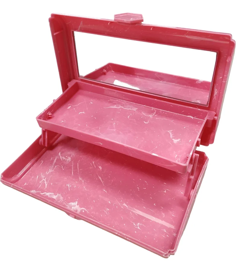 Πλαστικό κουτί οργάνωσης καλλυντικών και μπιζού με καθρέπτη και εργονομική σχεδίαση 2 επιπέδων για εξοικονόμηση χώρου.