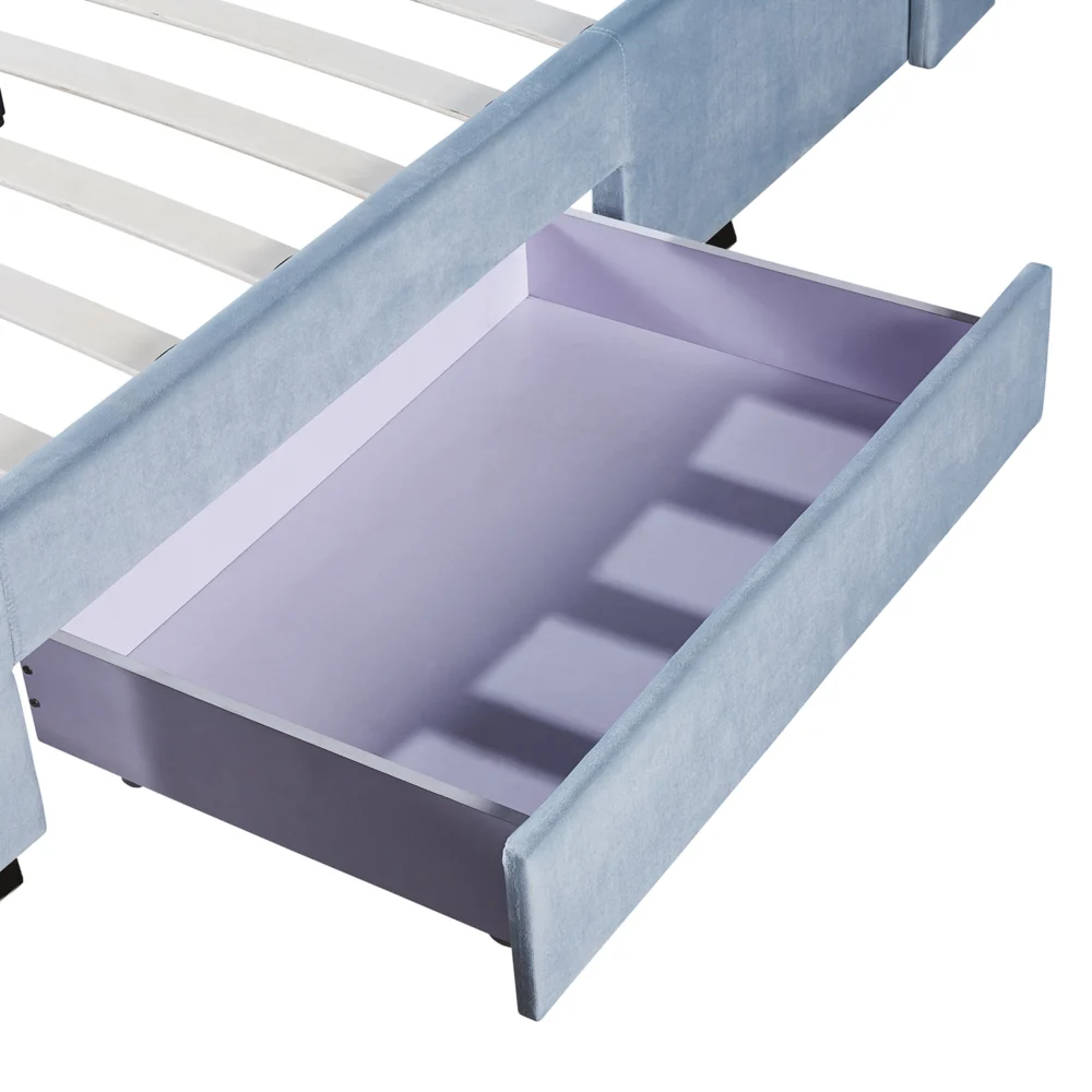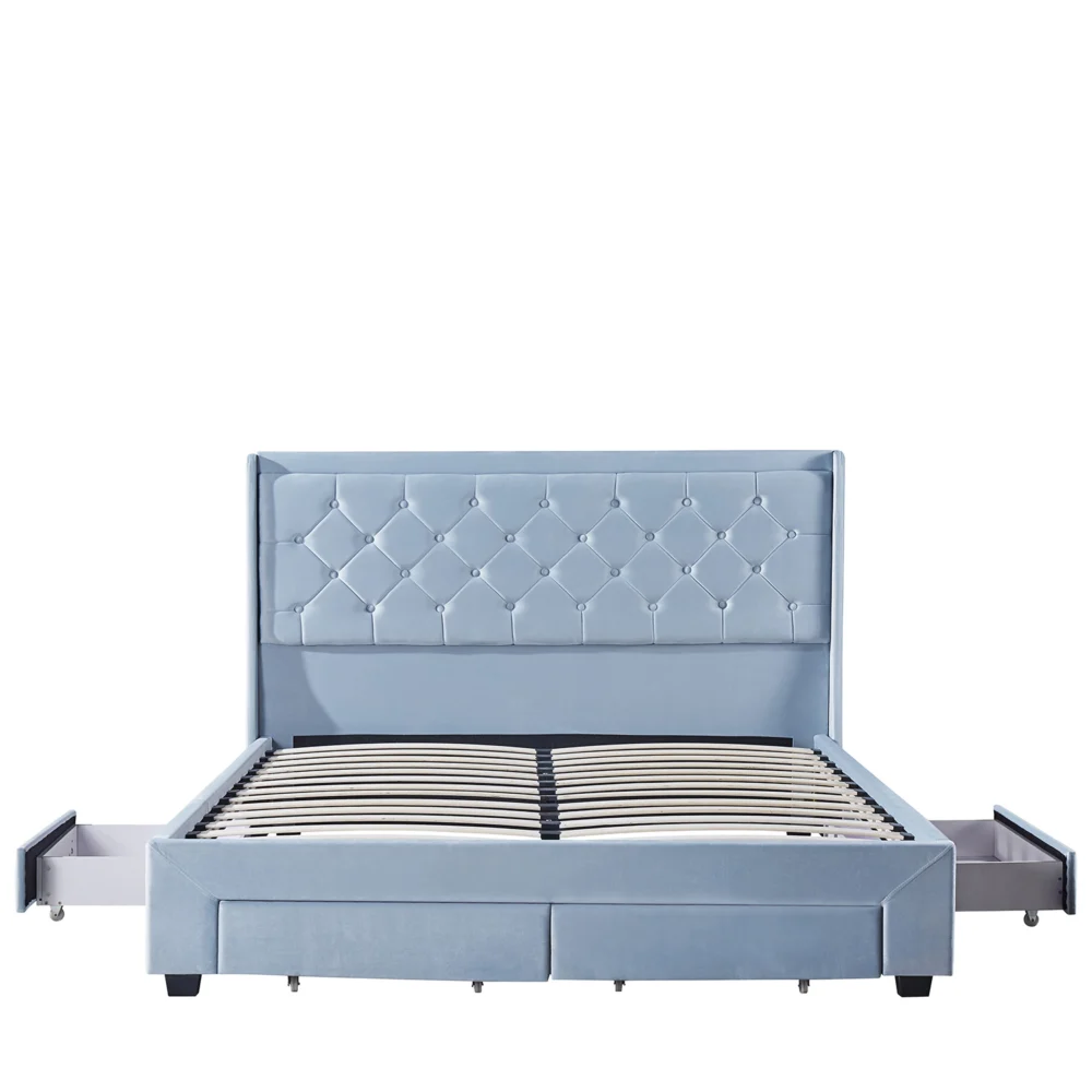 Κρεβάτι Διπλό ArteLibre ANNONA Γαλάζιο Βελούδο 217x175x117.5cm (Στρώμα 160x200cm)
