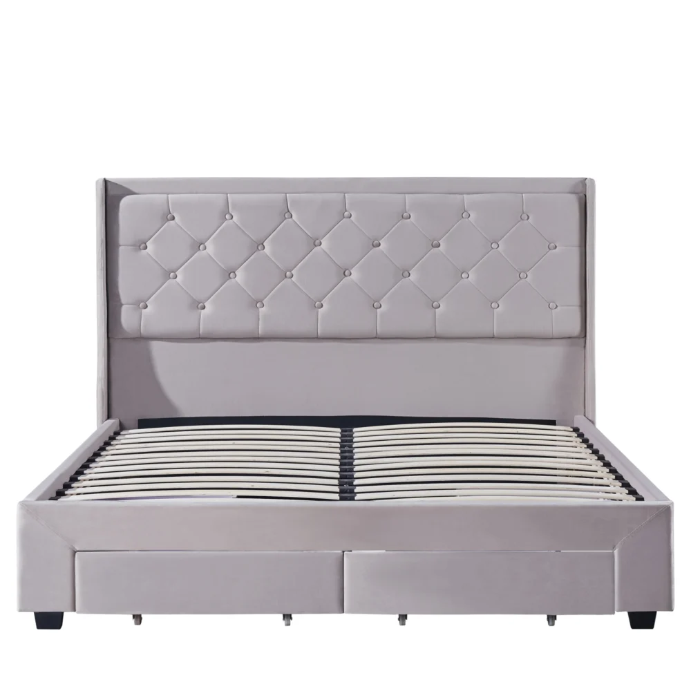 Κρεβάτι Διπλό ArteLibre ANNONA Ivory Βελούδο 217x175x117.5cm (Στρώμα 160x200cm)