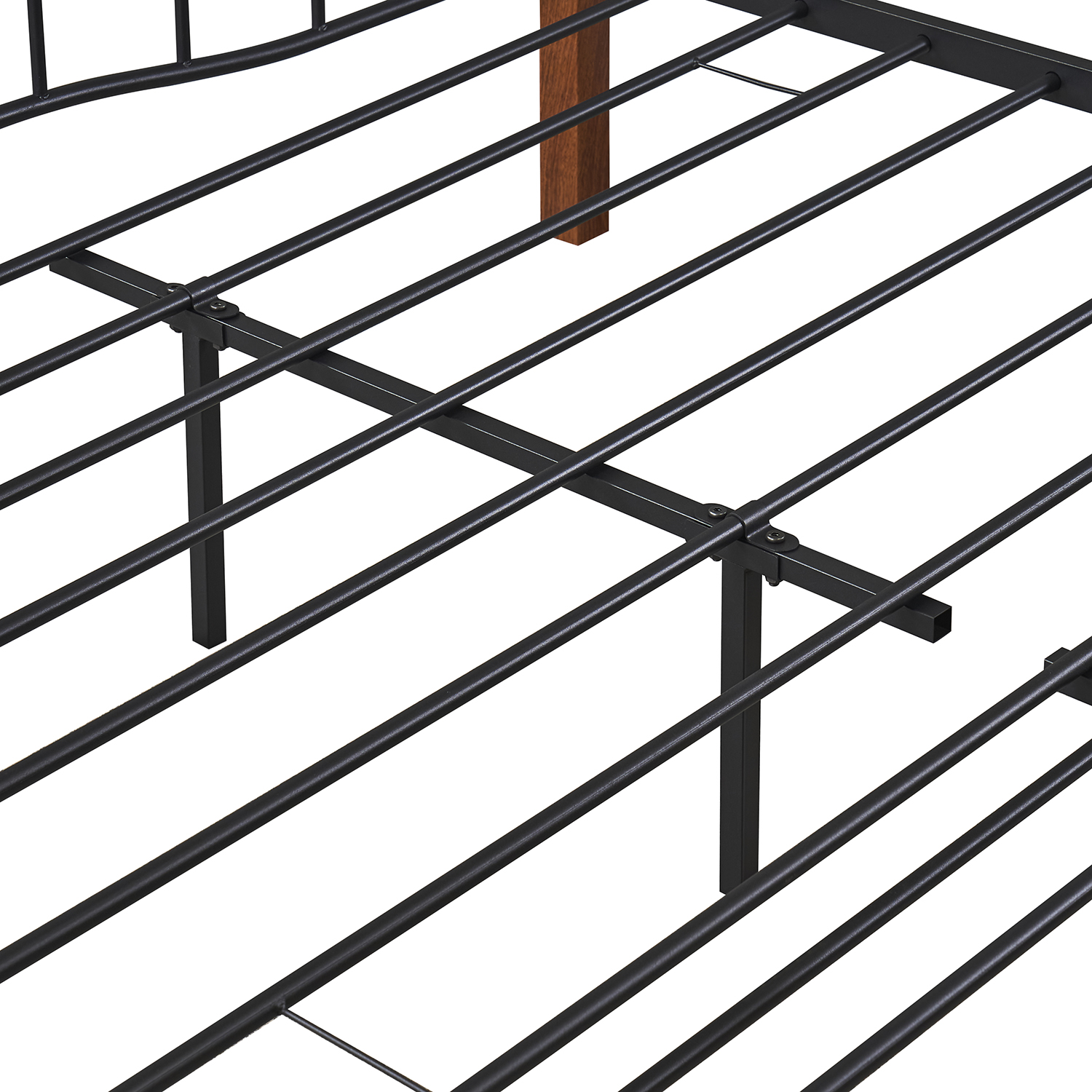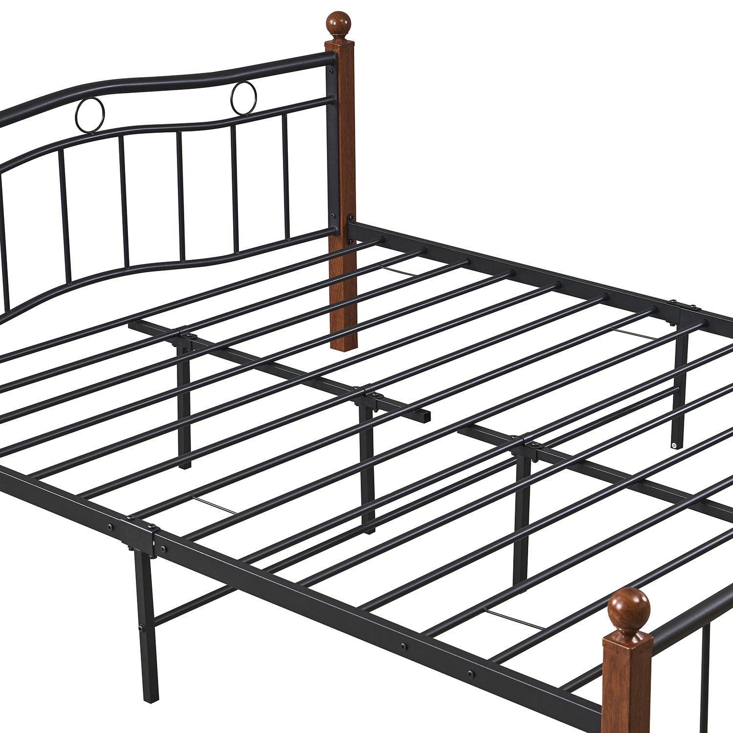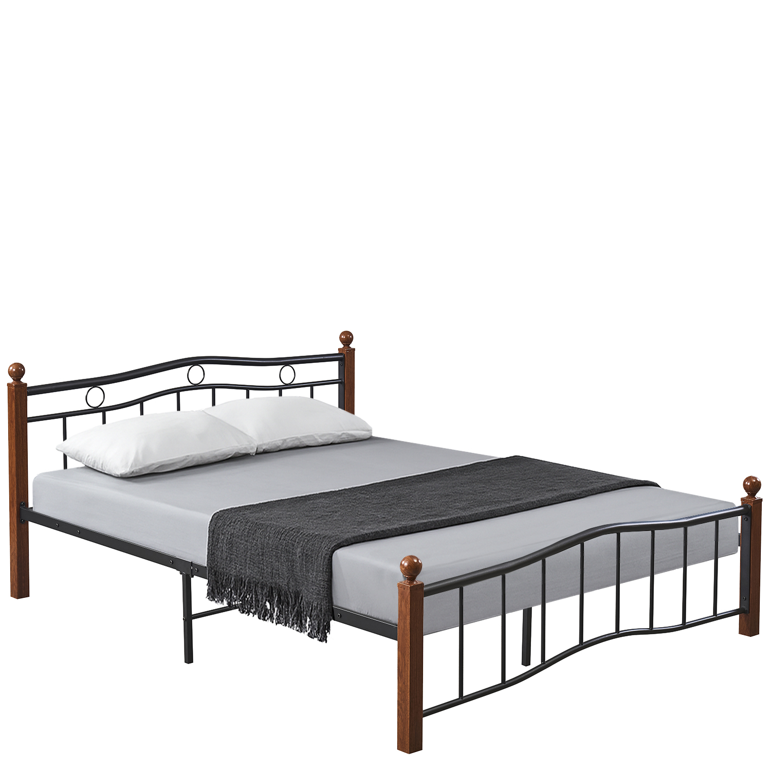 - Μαύρο και καρυδί μεταλλικό πλαίσιο για ζεστή αίσθηση