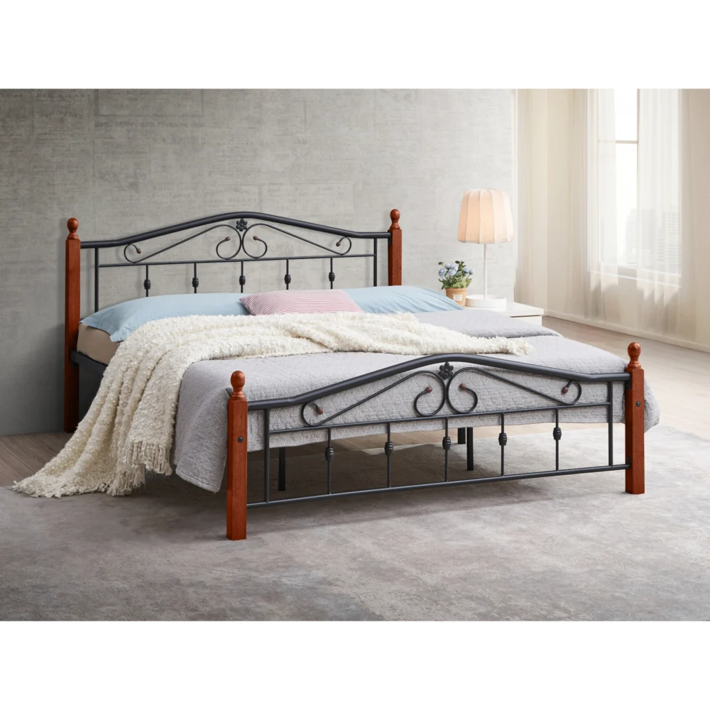 - Μεταλλικό κρεβάτι σε κλασικό σχέδιο με σταθερό και στιβαρό σκελετό ανθεκτικό στη φθορά του χρόνου και ξύλινα πόδια-κολώνες