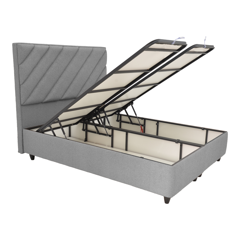 Κρεβάτι διπλό Tito pakoworld με αποθηκευτικό χώρο μπουκλέ ύφασμα σε ανοιχτή γκρι απόχρωση 160×200εκ