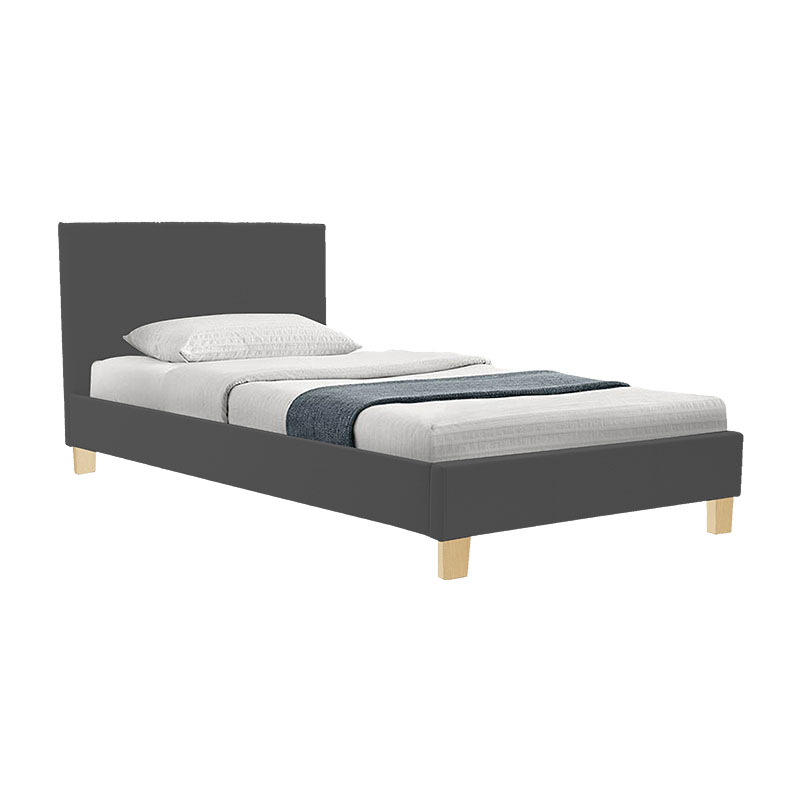 Κρεβάτι με στρώμα Nevil-Dreamer pakoworld ύφαμα ανθρακί-πόδι φυσική απόχρωση 90×190εκ