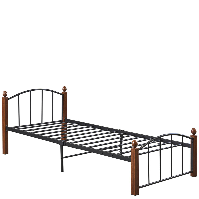 Κρεβάτι Μονό ArteLibre LARAMIE Μαύρο/Καρυδί Μέταλλο Για Στρώμα 90x200cm