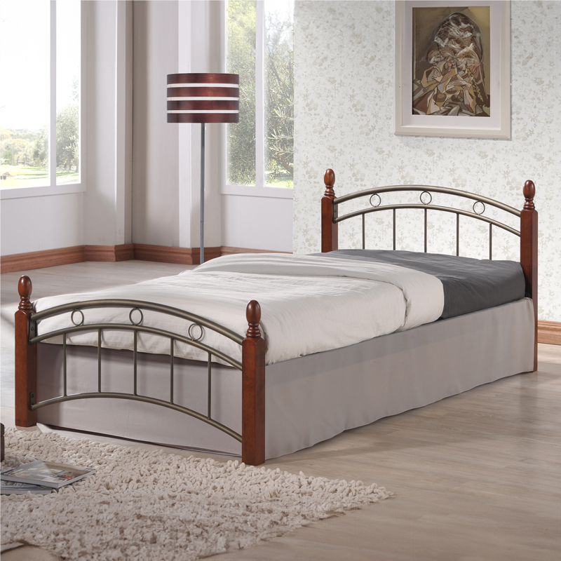 Κρεβάτι μονό Clarive pakoworld ξύλο σε καρυδί απόχρωση-μαύρο μέταλλο 90×190εκ