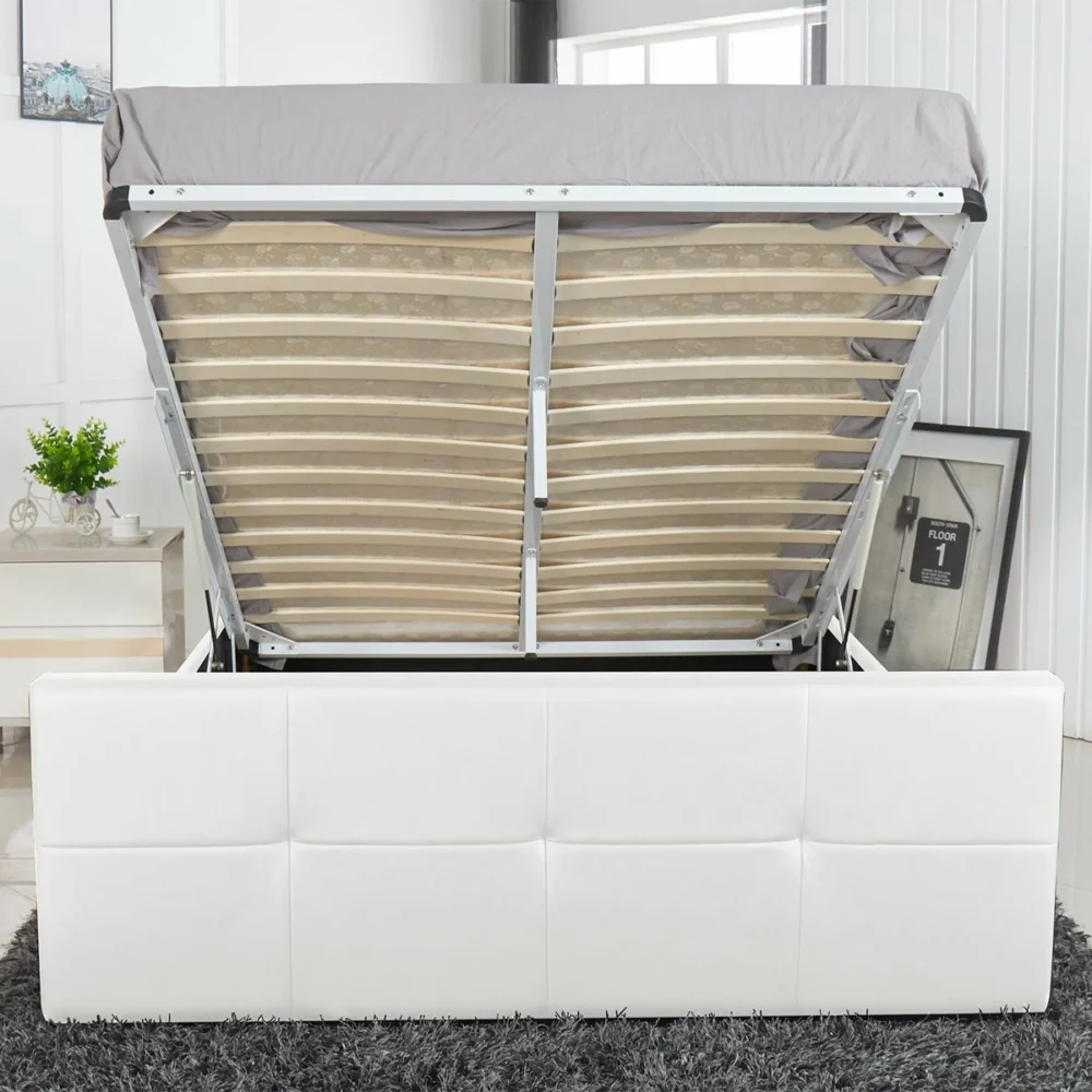 Κρεβάτι ArteLibre ANEMONE Λευκό PU Με Αποθηκευτικό Χώρο 217.5×170.5x100cm (Στρώμα 160x200cm)