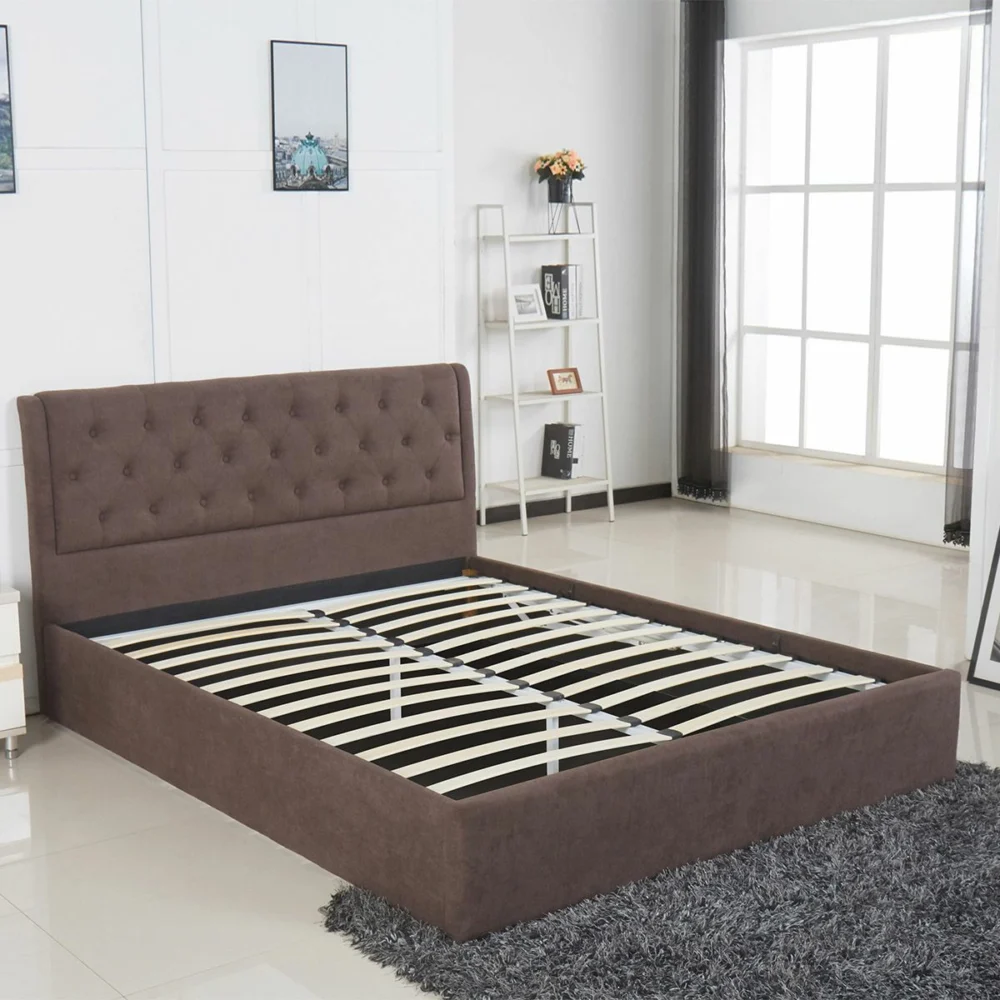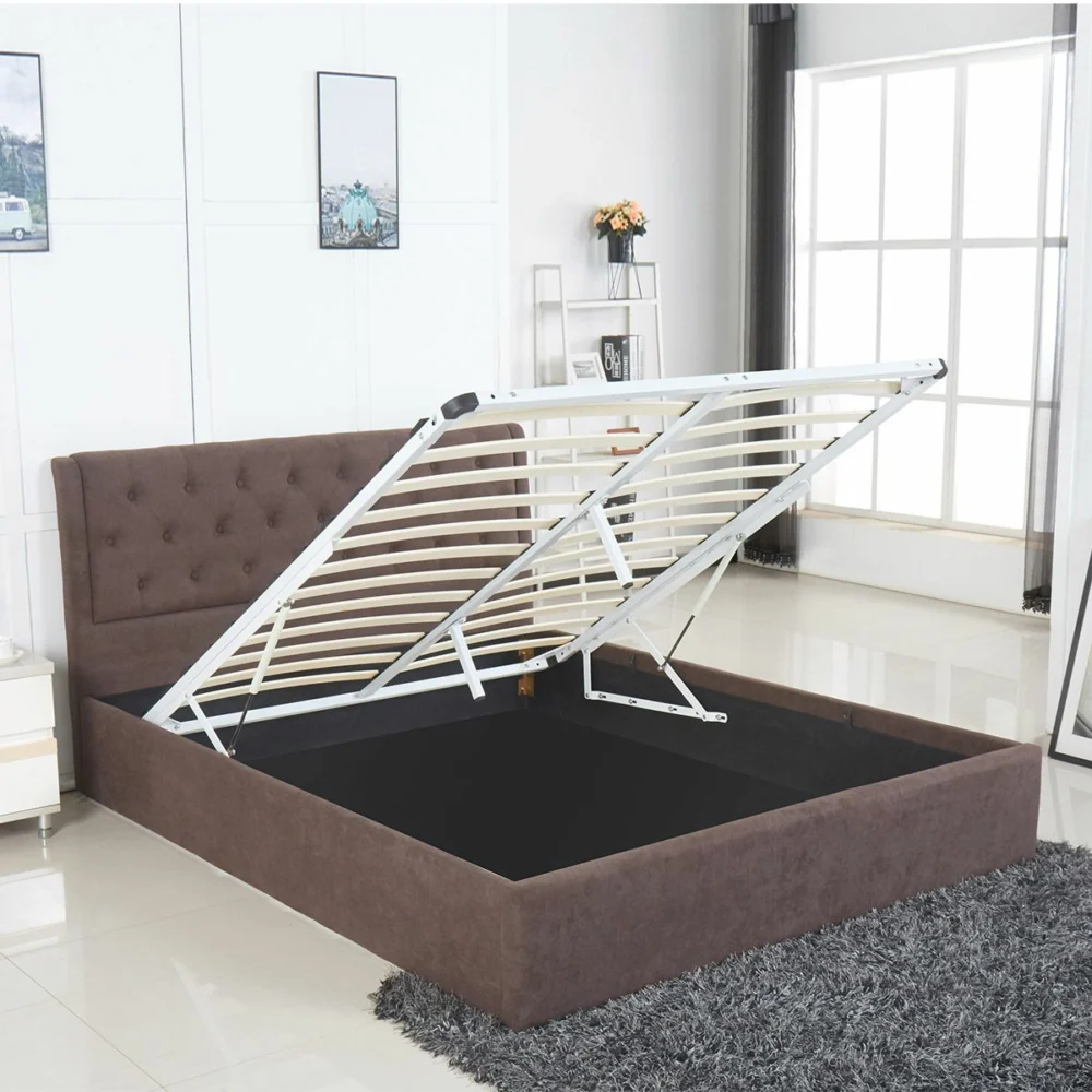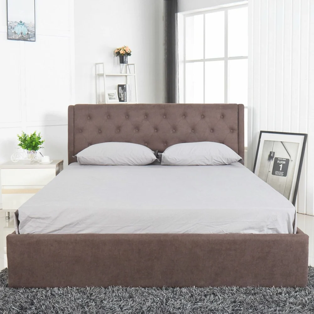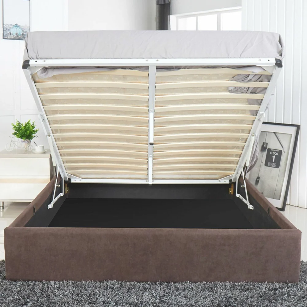 Κρεβάτι ASTER Σκούρο Καφέ Ύφασμα Με Αποθηκευτικό Χώρο 216×170.5x103cm
