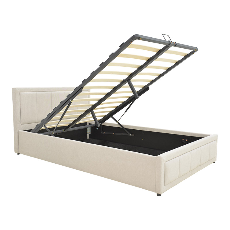 Κρεβάτι Huga pakoworld με αποθηκευτικό χώρο ύφασμα μπεζ 120×200εκ
