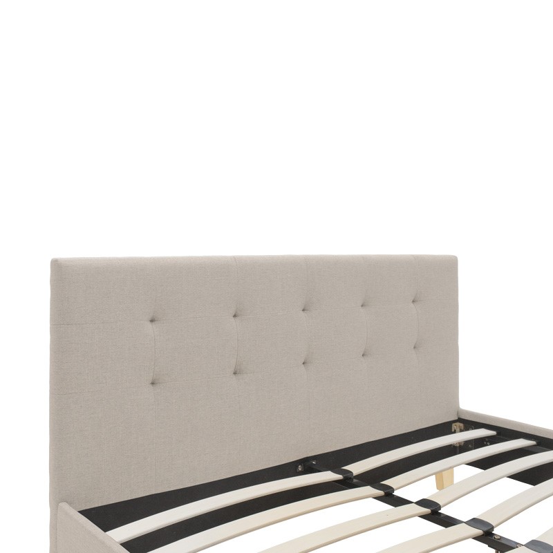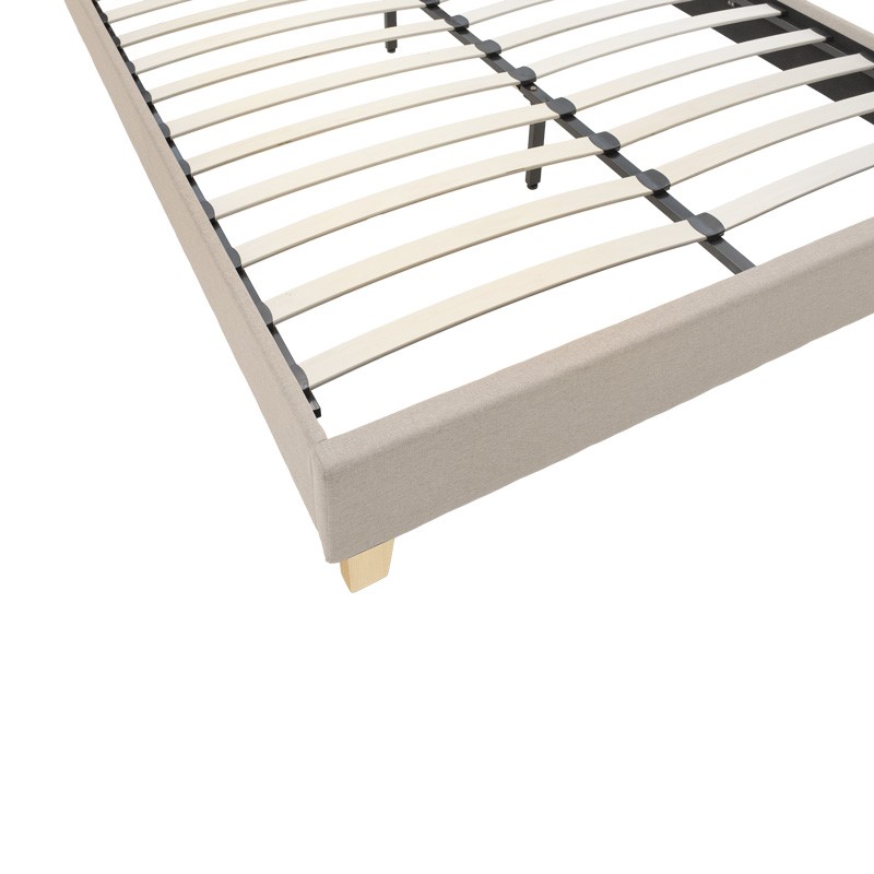 Κρεβάτι Mago pakoworld ύφασμα σε εκρού απόχρωση με φυσικό ξύλινο πόδι 140×200εκ