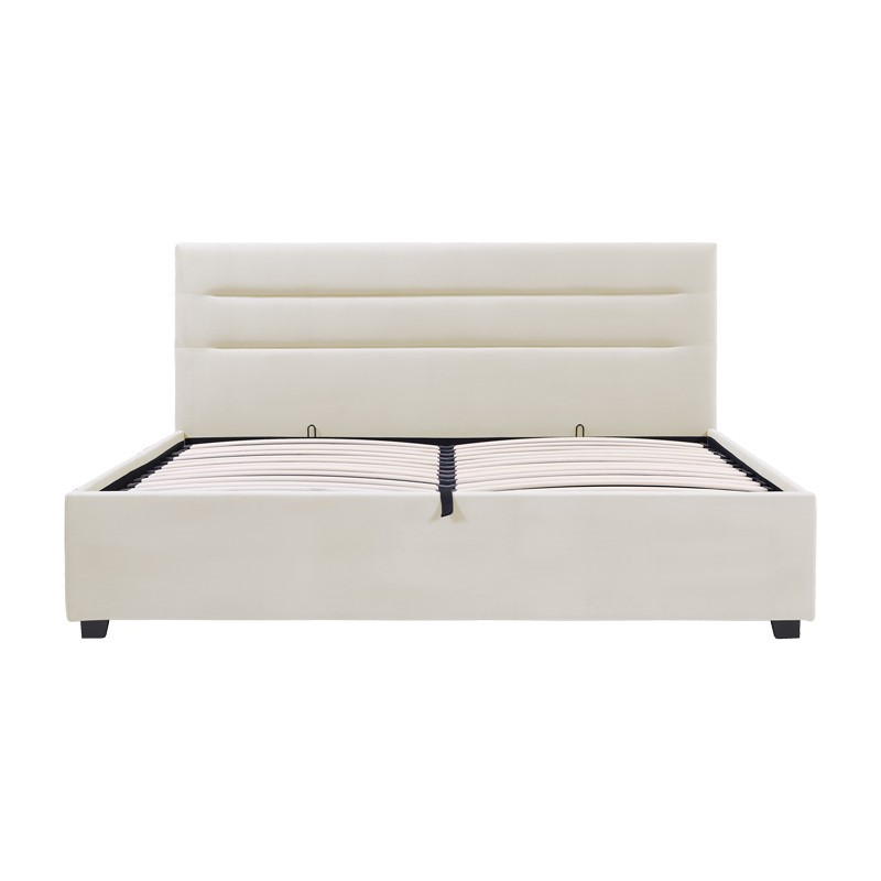 Κρεβάτι Molito pakoworld βελούδο σε εκρού απόχρωση με αποθηκευτικό χώρο150×200εκ
